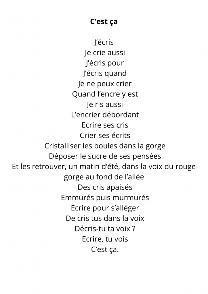Poème écrit pour un recuil de poésie
