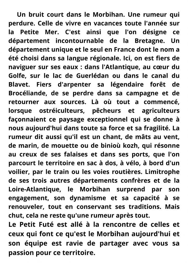 Edito du Guide Morbihan 2024 du Petit Futé